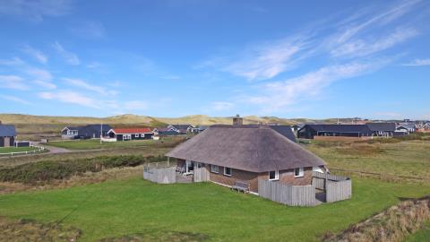 Dette hyggelige murstenshus med stråtag er beliggende i Vejlby Klit blot 200 m fra det brusende Vesterhav. Her der er der god plads til 6 personer og 1 husdyr. Der naturligvis også internet så man også i ferien kan holde sig orienteret.