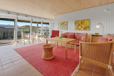 Huset ligger på en 2.536 m² stor naturgrund, kun 200 meter fra Vesterhavet. Der er en dejlig, delvist overdækket terrasse med havemøbler, liggestole og grill. Her er man godt beskyttet mod vinden og kan nyde udelivet året rundt.