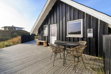 Fuldstændig unikt og fantastisk beliggende, nyrenoveret luksushus. Huset ligger som det sidste hus helt op til klitterne ved Vesterhavet med fantastisk udsigt til de høje klitter ved Vesterhavet. Moderne feriehus i træ, som er noget ganske særligt. Der er en stor terrasse omkring huset som bl.a. er med en udendørs spa og en udendørs sauna og udendørs bruser, gratis fibernet. Et hus med plads til max. 7 personer som kan nyde denne luksus. En rolig stund, en plads i solen er blot noget af det huset tilbyder.