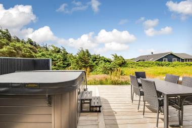 Fuldstændig unikt og fantastisk beliggende, nybygget, energibesparende luksushus. Huset er bygget tæt ved Vesterhavet med fantastisk udsigt til de høje klitter ved Vesterhavet og tæt ved til Ferring Sø. Moderne liebhaverbyggeri som er noget ganske særligt. Der er bl.a. stort udendørs spa til 5 personer, sauna, gratis fibernet (200 mbit) og aktivitetsrum med bl.a. billard og bordfodbold. Et hus med plads til max. 8 personer som kan nyde denne luksus. En rolig stund, en plads i solen eller konkurrencer i aktivitetsrummet er blot noget af det huset tilbyder.