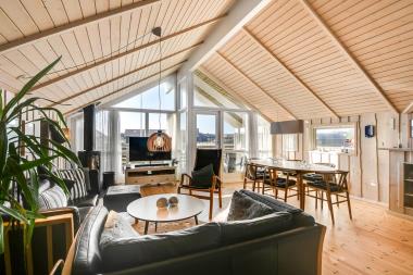 Huset er 96 m2 stort og er meget lyst og velindrettet med store vinduespartier, som giver et fantastisk lysindfald. Der er åbent til kip i stuen, og de lyse trævægge, trægulve og trælofter giver sammen med lysindfaldet fra de store vinduer en lys og venlig atmosfære i rummet. Køkkenhjørnet er veludstyret og indeholder alt i hårde hvidevarer.  Der er opvaskemaskine, mikroovn, glaskeramiske kogeplader, indbygningsovn, emhætte og køle/fryseskab. Opholdsstuen er med komfortable lædermøbler, Smart-TV med danske og tyske programmer samt Chromecast, som giver mulighed for streaming af TV / radio / Apps. Så har du en mobiltelefon eller en tablet, kan du stream, hvad du har abonnement til. Til TV’et er tilkblet en DVD afspiller med blue-ray. Desuden har stueområedet en Digital Radio med CD-afspiller hvor du også kan stream din musik.. Slap af foran den knitrende brændeovn som sammen med varmepumpen hjælper med at reducere udgiften til varmeregningen. Husets 3 soverum er indrettet med 1DS + 1DS + 2S, og så er der desuden en alkove i stuen med 2 sovemuligheder. Dejligt stort badeværelse med toilet, håndvask, bruser, spabad, gulvvarme og direkte adgang til sauna. I entrén finder du vaskemaskine og tørretumbler samt adgang til ekstra toilet med håndvask og gulvvarme. Max. 2 husdyr er tilladt. Dette hus er et ikke rygerhus.