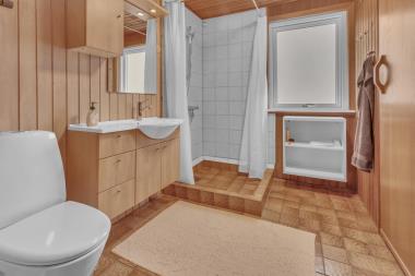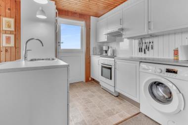 Stuen er hyggelig indrettet og direkte forbundet med køkkenet. Fra stuen har man også direkte tilgang til den sydvendte terrasse, så der er rigtig gode muligheder for en hyggelig sommerdag i og omkring huset. Omkring fladskærm giver møblementet rigelig mulighed for at familien kan samle sig om begivenhederne inde på skærmen – om det er fodbold, håndbold eller endda en god film. Således kan man med fordel medtage sine yndlings-DVD’er da der er DVD-afspiller i huset. Herudover kan man naturligvis et regulært TV og der er tilmed en parabol, men kun med tyske kanaler. I stuen er det ligeledes muligt at tænde op i den hyggelige pejs. Det er også i selve stuen at spisebordet er placeret i umiddelbar nærhed af køkkenet.I køkkenet er der hvad der skal være: Emhætte, glaskeramisk komfur, køleskab, mikrobølgeovn, opvaskemaskine samt separat fryser på 20 liter. Vaskemaskinen i huset er til orientering også praktisk placeret i køkkenet. Baderummet i huset har toilet, håndvask, bruser og tilmed en sauna.