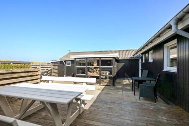 Dette velbeliggende feriehus har 4 soverum (1DS, 1DS, 1DS + 1K). Huset er 120m2 stort og det store lyse opholdsrum er åbent til kip med fantastisk lysindfald fra ovenlysvindue og store vinduespartier, hvorfra der er udsigt til klitterne mod havet. Huset er indrettet med indgang med vaskemaskine, 4 soverum, badeværelse med brus samt åbent og velindrettet køkken i forbindelse med stue. Køkken og stue er et helt fantastisk rum med opgang til stor lys hems. Der er også en hyggelig brændeovn og huset kan desuden opvarmes med varmepumpe og el-radiatorer. Huset er altid rart og varmt uanset vejr og årstid. I det veludstyrede køkken er der kaffemaskine, varmluftsovn, keramiskkogeplade, mikroovn, opvaskemaskine og køleskab med fryser. I stuen er der spisebord, tv-hjørne med sofaarrangement, TV med danske og tyske kanaler samt Chromecast og wi-fi. Max 1 husdyr tilladt.