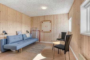 Hyggeligt feriehus beliggende blot 100 m fra Vesterhavet. Huset er lyst og venligt indrettet og har fået lavet en ny havestue som sørger for et meget godt lysindfald i rummet. Der er klinkegulv i køkken og stueafdelingen og vægge og lofter er hvidmalet. Der er lædermøbler i stuen samt TV med danske og tyske kanaler og CD afspiller. Der er trådløs internetadgang. Køkkenet er af nyere dato og indeholder El-komfur, køleskab mit frostbox og opvaskemaskine. Desuden er der monteret en varmepumpe som sørger for en god og billigere opvarmning. Der er 4 soverum i huset (1DS + 1DS + 1DS og 1DS). Ny tilbygning (2022). Her findes det ene soveværelse som har elevationsseng samt lækket badeværelse med klikegulv med gulvvarme, brusenishe, toilet og håndvask. Ekstra badeværelse med toilet, håndvask, bruser og der er herfra adgang til saunaen, der er gulvvarme i rummet. Der findes også en vaskemaskine og en tørretumbler i huset. Carport til bilen. Har man el-bil eller en Plug-In hybrid, så er der ved Ladeboks til Type 2 ladestik. Ikke-ryger hus. Husdyr er ikke tilladt.