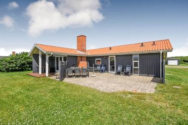 Rummelig og godt indrettet træferiehus centralt beliggende kun ca. 250 meter til cafeteria samt større supermarked. Vesterhavet og stranden ligger ligeledes kun ca. 500 meter huset. Tæpper i stue og værelser – venyl i køkkenet og klinker på badeværelset. Gratis internetadgang. Gode terrasseforhold med havemøbler og liggestole samt udendørs pejs. Parabol dog kun med tyske kanaler. 3 soverum : 2 med dobbeltsenge og et soverum med 2 senge og en børneseng. Renoveret 2014 med nyt badeværelse. husdyr ikke tilladt. Ikke rygerhus.