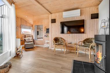 Huset er klassisk indrettet med den ene del af huset som et samlet rum af køkken og stue og resten af huset har badeværelse og soveværelser. Køkkenet har glaskeramisk komfur, mikrobølgeovn og køle-fryseskab. Hertil er der også en opvaskemaskine, som giver ekstra tid med sine gæster eller familien. Stuen har både sofagruppe, sofabord og spisebord. Slap af foran den knitrende brændeovn som sammen med varmepumpen hjælper med at reducere udgiften til varmeregningen. Her er også en fladskærm med både tysk og dansk tv – blandt andet TV, samt CD-afspiller, i stuen er der også en alkove med plads til 2 personer. Badeværelset byder på håndvask, bruser, toilet, gulvvarme og vaskemaskine samt adgang til sauna. Der er 3 soveværelser hvoraf 2 er med dobbeltsenge og en med 1 køjeseng.