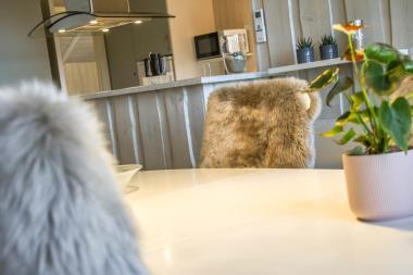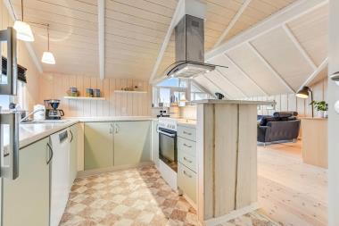 Allerede ved ankomsten bydes I velkommen i en pæn og rummelig entré med god plads til overtøj og fodtøj samt både vaskemaskine og tørretumbler. Herfra træder I ind i husets hjerte – det lyse og indbydende køkken-alrum med stue i åben forbindelse og loft til kip. De store vinduespartier sikrer et fantastisk lysindfald og skaber en skøn atmosfære hele dagen. Det veludstyrede køkken gør det let at tilberede feriens måltider, og stuen indbyder til hyggelige stunder foran brændeovnen eller med en god film på TV’et, hvor både danske og tyske kanaler samt Chromecast er til rådighed. Varmepumpen og brændeovnen sørger for behagelig varme året rundt og bidrager samtidig til et lavere energiforbrug.