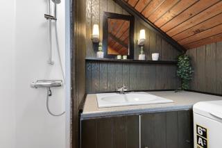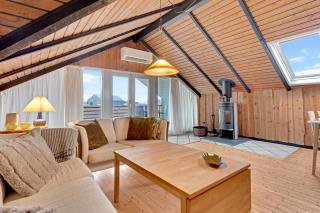 Huset består af et stort køkken-stue-alrum og så er der sove- og badeværelsesafdelingen. Fra begge afdelinger er der direkte adgang til det store, indhegnet terrasseanlæg. Nyt køkken med glaskeramisk komfur, mikrobølgeovn, køle-/fryseskab, opvaskemaskine og miniovn. Herfra er der kort vej til den store sofagruppe med sofabord i stuen hvortil der hører et smart-tv med sound bar, danske og tyske programmer samt mulighed for streaming af TV / radio / Apps via Chromecast. Så har du en mobiltelefon eller en anden devise med kan du streame hvad du nu har abonnement. Har man lyst til radio eller musik kan i høre det fra TV, PlayStation 3 eller fra højtaler med mulighed for at tilslutte IPhone. Til stuen hører også en brændeovn, så man får den helt rigtige sommerhusstemning under knasterne på loftet og der er desuden installeret varmepumpe som hjælper med et lavere forbrug. Mindre badeværelset består af et toilet, håndvask og bruser samt en lille vaskemaskine, tørretumbler og i samme afdeling af huset er der 2 soveværelser. Et soverum med dobbeltseng (140 x 200), og det andet soverum er med 2 enkelt senge. Der er også et anneks med 2 senge.