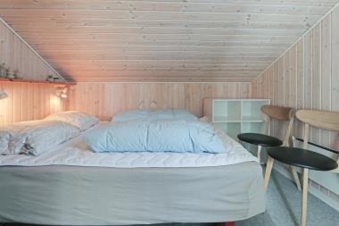 Feriehuset er på 65 m² og har plads til seks personer. Indretningen er lys og indbydende med en hyggelig kombineret stue og køkken. Det pæne og moderne køkken er veludstyret med komfur med glaskeramiske kogeplade, emhætte, opvaskemaskine, mikroovn samt køle-/fryseskab, så du nemt kan tilberede dagens måltider. Spisepladsen ligger i forlængelse af køkkenet og danner rammen om hyggelige måltider med familien.