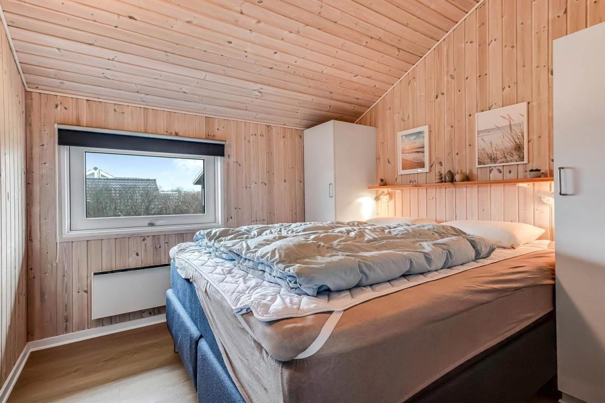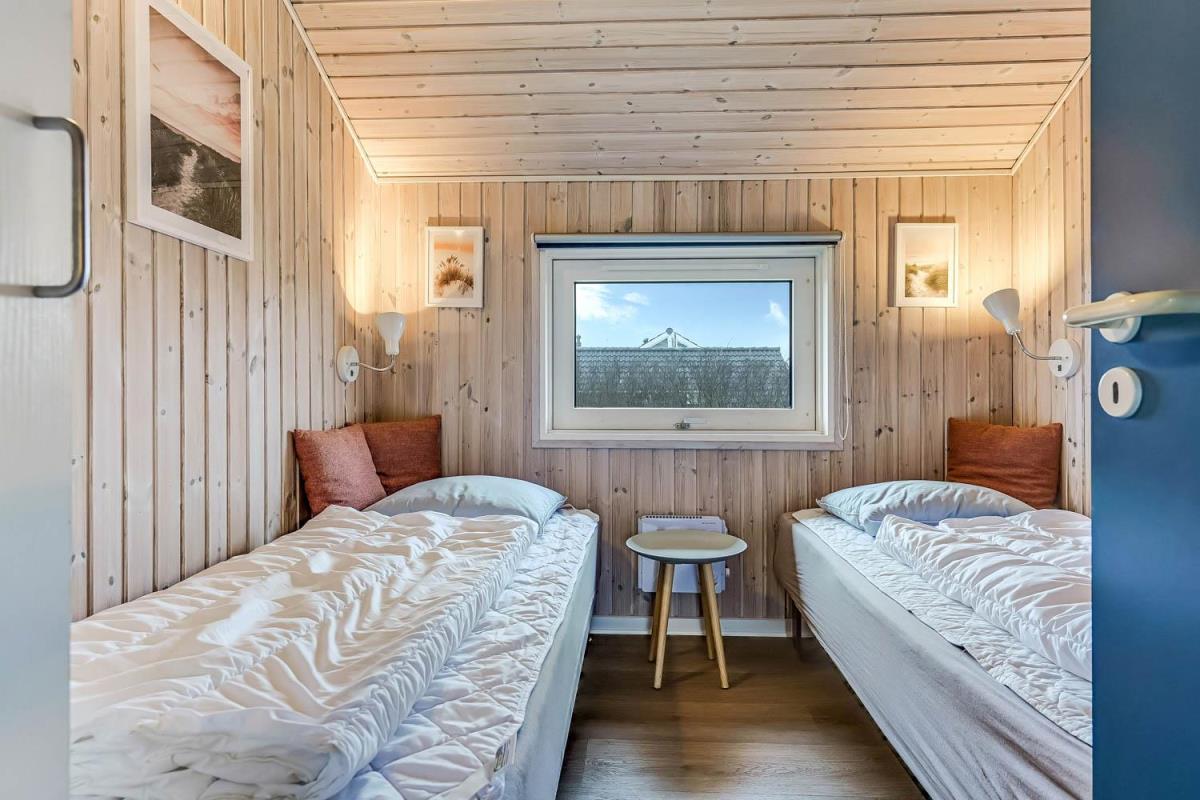Huset råder over tre soveværelser – to med dobbeltseng og ét med to enkeltsenge – alle med gulvtæpper. Badeværelset er lyst og funktionelt med bruser, toilet, vaskemaskine og klinkegulv. For gæster med elbil eller plug-in hybrid er der opsat ladeboks ved huset. Det er et røgfrit hus, og husdyr er ikke tilladt.