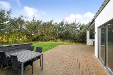 Flot, energispare- og kvalitets hus i de bedste materialer til 9 personer. Huset har alt hvad man kan ønske sig og byder bl.a. på gratis internet, aktivitetsrum og en dejlig stor, delvis overdækkes terrasse. Der er god plads til alle husets beboere. Den perfekte ramme til en fantastisk ferie tæt ved Vesterhavet.