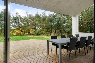Flot, energispare- og kvalitets hus i de bedste materialer til 9 personer. Huset har alt hvad man kan ønske sig og byder bl.a. på gratis internet, aktivitetsrum og en dejlig stor, delvis overdækkes terrasse. Der er god plads til alle husets beboere. Den perfekte ramme til en fantastisk ferie tæt ved Vesterhavet.