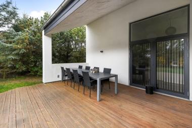 Kun 400 meter fra huset ligger det brusende Vesterhav og der er kun 300 m til Ferrings sø. Huset ligger på en 900m2 velholdt og privat grund som er godt afskærmet af høje træer uden det har betydning for at solen skinner på terrassen. Det flotte, elegante og delvist overdækket terrasseanlæg giver unikke muligheder for en plads i solen. Der er havemøbler, grill og liggestole som kan flyttes efter behov. Hver dag byder Vesterhavet på nye maleriske oplevelse, der invitere til en frisk gå- eller løbetur. Eller hvad med en lille tur på ca. 10 – 15 min op til områdets lille købmand som i sæsonen har åbent og byder på frisk morgenbrød og hvor de daglige indkøb også kan klares. Så hvad enten du er til aktiv ferie eller total afslapning danner dette flotte feriehus den perfekte ramme både hvad angår hus, beliggenhed og omgivelser.