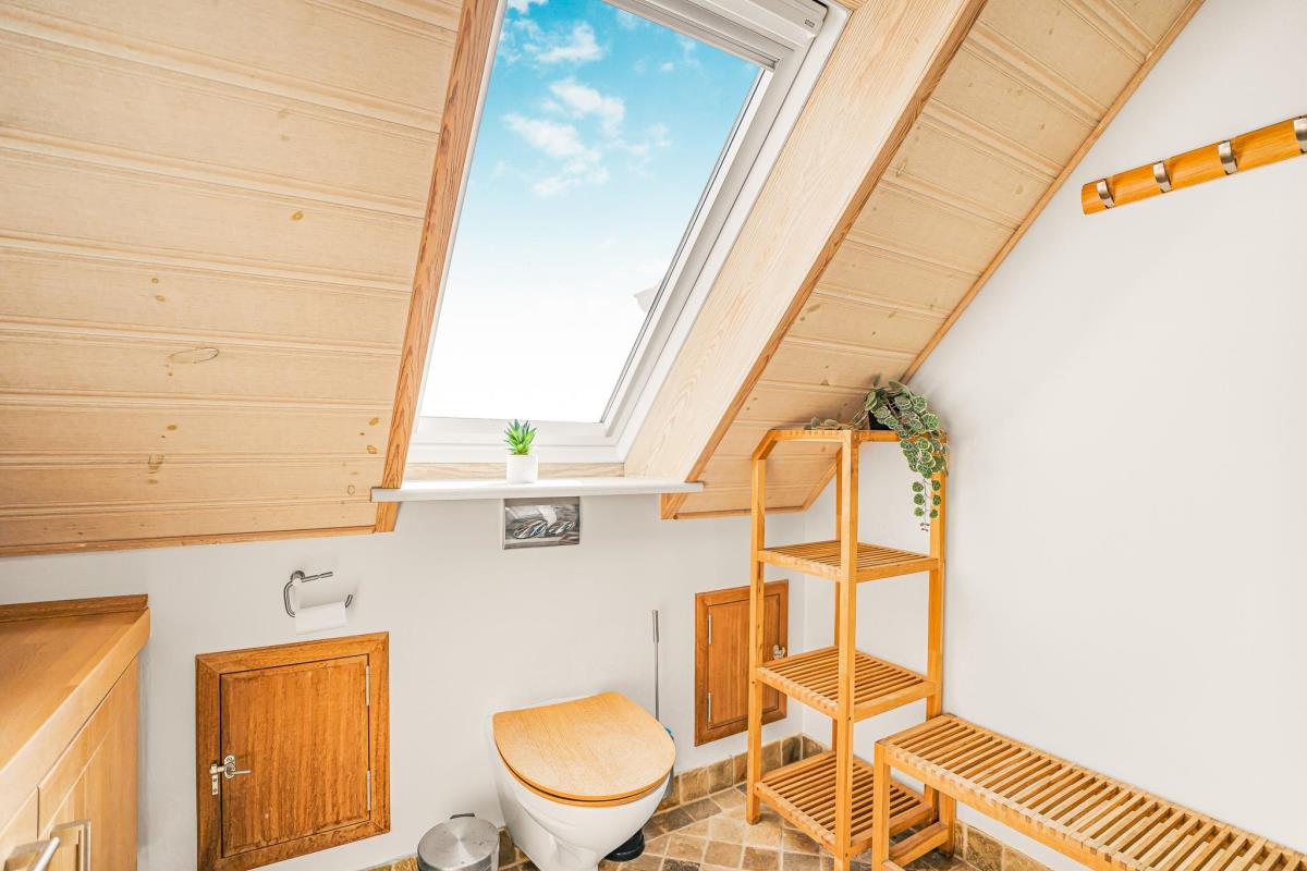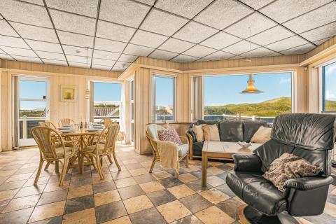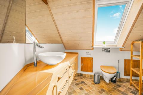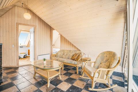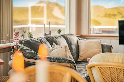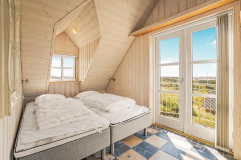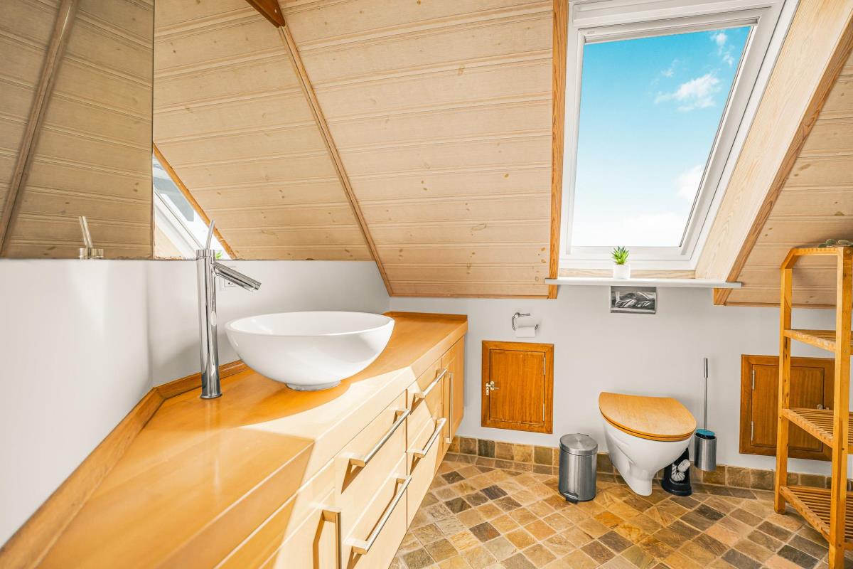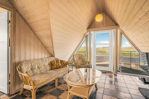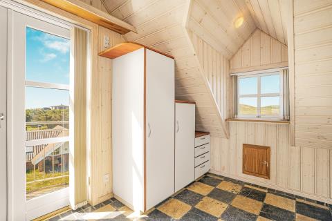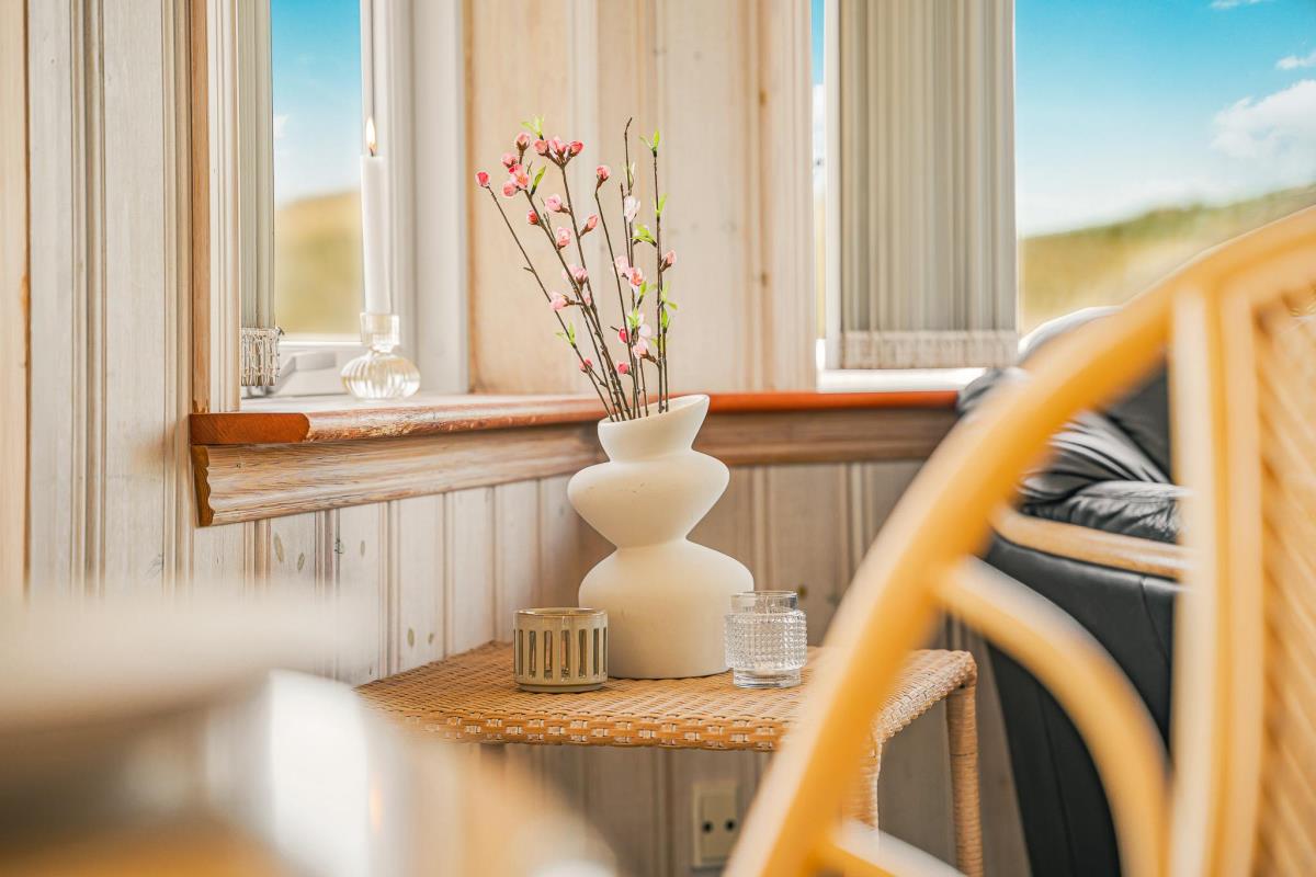 Huset er smagfuldt og stilfuldt indrettet med fokus på høj komfort og en rolig, indbydende atmosfære. På første sal møder I en charmerende og lys opholdsstue med komfortable møbler og TV – et oplagt sted at trække sig tilbage med en god bog eller nyde udsigten fra balkonen, hvor klitternes skiftende farver danner en malerisk baggrund. Etagen rummer desuden to af husets i alt fire soveværelser – det ene med direkte adgang til sin egen hyggelige balkon – samt et moderne badeværelse med toilet, bruser, håndvask og behagelig gulvvarme.