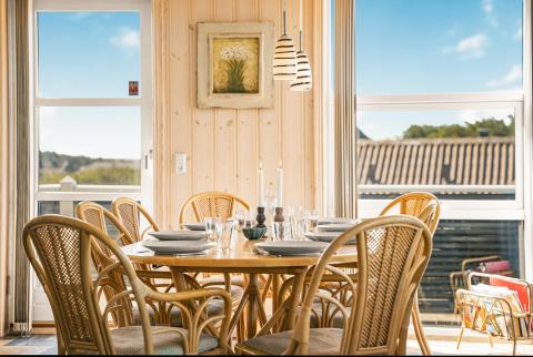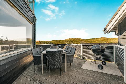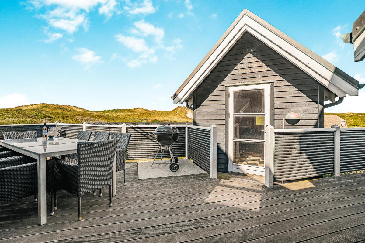 Terrassen indbyder desuden til uforglemmelige grillaftener og fælles måltider i det fri – alt sammen omgivet af den rå og smukke vestjyske natur. Huset ligger kun få skridt fra stranden, hvilket gør det til et ideelt udgangspunkt for badeture, lange gåture i klitterne eller friske vinterdyk.