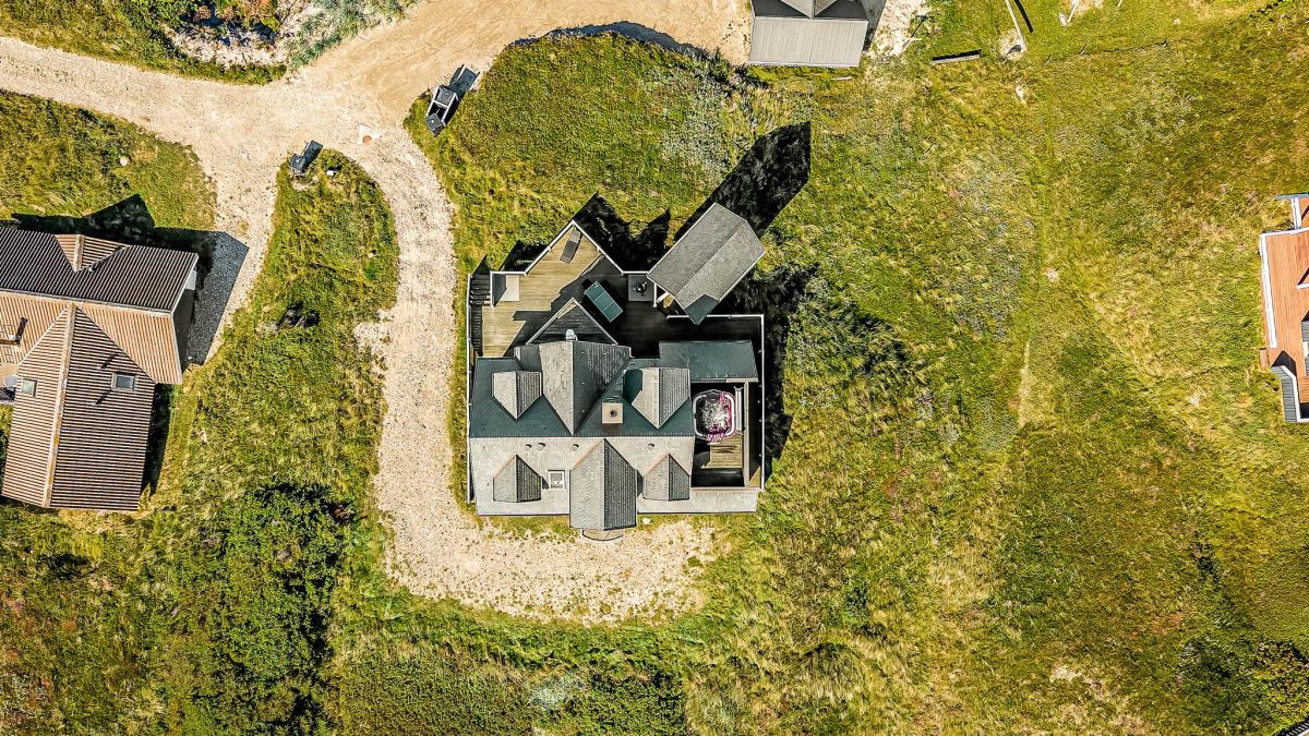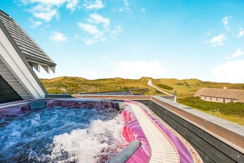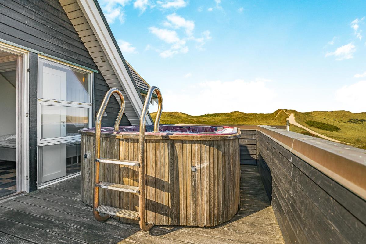 Udenfor venter et stort og smukt anlagt terrasseområde med masser af muligheder for både sol og skygge. Flere afskærmede læ kroge, komfortable liggestole og et rummeligt udendørs spabad skaber optimale rammer for ren nydelse under åben himmel. Her kan I høre Vesterhavets beroligende brusen i baggrunden, mens I nyder et glas vin, en god bog eller en stjerneklar aften i det varme vand.