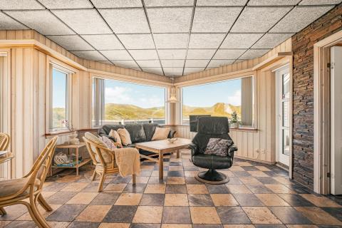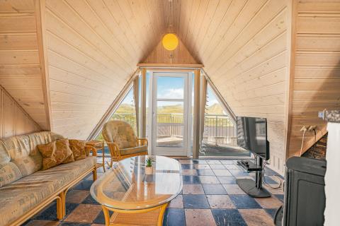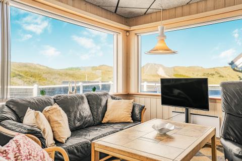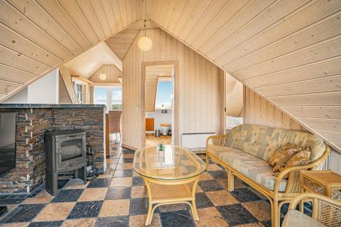 I forlængelse af køkkenet finder I spiseområdet, perfekt placeret til at samle alle omkring bordet. Den rummelige stue byder på komfortable lædermøbler, fibernet-TV, hyggelig brændeovn og varme under fødderne takket være gulvvarmen – ideelle rammer for afslappede aftener med spil, film og samvær.