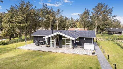 I det særdeles attraktive område i Vejlby Klit ligger dette nybygget, energibesparende luksushus. Huset er bygget på en eftertragtet grund, tæt på Vesterhavet og Ferring Sø. Moderne luksushus som er noget ganske særligt. Der er bl.a. en udendørs spa, indendørs spa, sauna, gratis fibernet og aktivitetsrum med kombineret poolbillard og bordtennis. Et hus med plads til max 8 personer som kan nyde denne luksus. En rolig stund i solen eller konkurrencer i aktivitetsrummet er blot noget af det huset tilbyder.