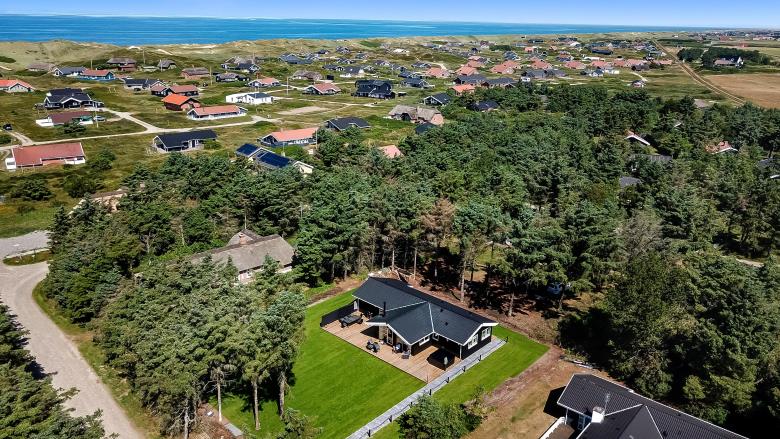 Der er masser af plads på den 1.202 m2 store, unikke naturgrund og på det pragtfulde terrasseanlæg er der masser af muligheder for en plads i solen eller måske i skyggen. Også herfra er der en dejlig udsigt og der er tænkt på det meste. Stor gasgrill, dart, masser af havemøbler og liggestole. En tur i den udendørs spa gør oplevelsen unik og specielt på de mørke aftener med den klare stjernehimmel. En unik oplevelse som er ren terapi for sjæl og krop. Fra grunden kan man via grusstier nemt gå til direkte over klitten til Vesterhavet. Således er der ikke langt til strandfornøjelser som badning, drageflyvning, lystfiskeri eller vandreture i den friske luft hvor man til tider kan blive blæst helt igennem. Vesterhavets vandkant ligger blot 350 meter fra huset. Herudover ligger huset tæt på en af Vestjylland smukkeste cykel- / vandre ruter der bl.a. byder på mulighed for at se både sø og hav på samme tid samt tæt på indkøb og restaurant. Nærmeste sæsonåbne købmand ligger kun 400 meter ved Vejlby Torv som også byder på en cafe / spisested. Vi anbefaler også gerne et besøg i havnebyen Thyborøn 15 km nord for sommerhuset eller den gamle købstad Lemvig 13 km mod øst. Dette hus tilbyder unik luksus og er velegnet til parret eller familien, der vil bo tæt på havet og ønsker en helt speciel oplevelse de aldrig glemmer.