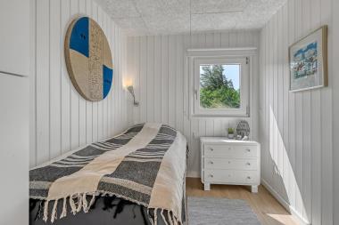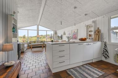 Allerede når bilen rammer grusvejen, med få meter til huset, bliver det klart at beliggenhed og hus er noget ganske særligt. Når man drejer ind på grunden og parkerer bilen ved huset begynder ferien. Huset er 92 m2. En dejlig entre med afhængeplads byder jer velkommen og fører jer direkte ind i et flot, moderne samtalekøkken. Fra både køkken og opholdsstue er er fantastisk udsigt til klitterne. Samtalekøkkenet har alt i service og køkkengrej og er også udstyret med komfur med glaskeramiske kogeplade, emhætte, mikroovn, køleskab med fryseboks og opvaskemaskine. Tæt ved køkkenet står spisebordet som hele familien kan samles ved. Opholdsstuen har dejlige polstermøbler, hvorfra såvel danske som tyske kanaler samt streamingtjenester via Chromecast / Google TV kan ses på fladskærmen som er opsat på væggen. Et yderst energivenligt hus med en strømbesparende varmepumpe som sørger for at huset nemt og billigt kan opvarmes, så man kan holde varmen også på kolde efterårsdage. 3 dejlige soveværelser (1DS, 2ES, 1ES) alle med trægulve. Husets badeværelse har bruser, toilet, håndvask og klinkegulv med gulvvarme. Ekstra toilet med håndvask, vaskemaskine og gulvvarme. Barnestol forefindes. Alle opholdsrum har trægulve med gulvvarme som er meget rengøringsvenligt. Dejligt aflåseligt skur til opbevaring af cykler eller lignende. Her er der også installeret 3-faset 220 volt cee(blå) samt 380 volt cee (rød) 16amp stik, der kan lade op til 11 kWh. Så har man el-cykel, el-bil eller en Plug-In hybrid, så er der mulighed for opladning ved huset. Ikke ryger hus. Husdyr er ikke tilladt.