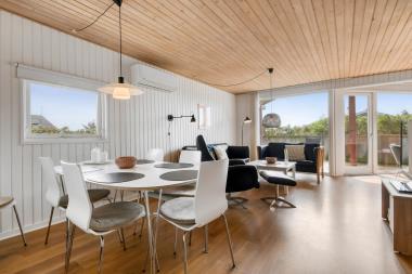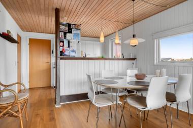 Meget velholdt og løbende moderniseret feriehus i træ med terrasse mod øst, syd og vest, som alle kan lukkes af, hvis der er hund eller små børn med, så det nu fremstår som et dejligt feriedomicil. Beliggende på en velholdt grund kun 250 meter fra Vesterhavet. Den indhegnet terrasse er helt perfekt til, at man kan have sin hund gående løs rundt men også en stor hjælp når børnene er med på ferie. Her er desuden gratis trådløs internetadgang.