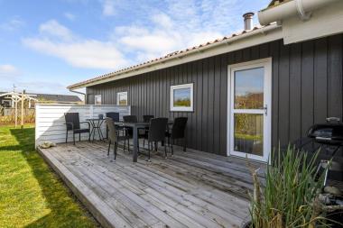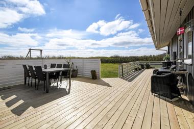 Feriehuset ligger på ca. 900 kvadratmeter åben naturgrund kun 350 m fra Vesterhavet. Huset har et åben og delvis overdækket terrasseanlæg hvor der både er grill, havemøbler og solvogne. I redskabsrummet er der ekstra afliggeplads og tørretumbler. Huset direkte ved siden af en af områdets legepladser. Der er kun 150 meter til Vejlby Torv hvor der findes en købmand der har åbent fra påske til og med oktober. Går man videre herfra er man hurtigt oppe ved Vesterhavet, som kan passeres via en overgang for gangbesværede, som også er god hvis man skal have en trækvogn eller klapvogn med på stranden. Umiddelbart cirka 600 meter syd for huset ligger Ferring Sø, hvor man kan foretage mange vandreture. Det pefekte og særdeles samgfuldt indrettet til både par og den lille familie.