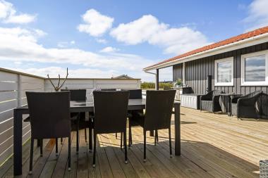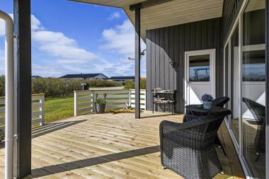 Feriehuset ligger på ca. 900 kvadratmeter åben naturgrund kun 350 m fra Vesterhavet. Huset har et åben og delvis overdækket terrasseanlæg hvor der både er grill, havemøbler og solvogne. I redskabsrummet er der ekstra afliggeplads og tørretumbler. Huset direkte ved siden af en af områdets legepladser. Der er kun 150 meter til Vejlby Torv hvor der findes en købmand der har åbent fra påske til og med oktober. Går man videre herfra er man hurtigt oppe ved Vesterhavet, som kan passeres via en overgang for gangbesværede, som også er god hvis man skal have en trækvogn eller klapvogn med på stranden. Umiddelbart cirka 600 meter syd for huset ligger Ferring Sø, hvor man kan foretage mange vandreture. Det pefekte og særdeles samgfuldt indrettet til både par og den lille familie.