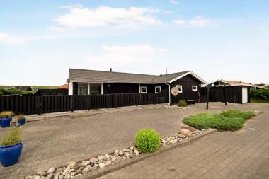 Hyggeligt indrettet feriehus i træ med stort, indhegnet delvis terrasseanlæg med elektrisk markise. Beliggende på en velholdt grund kun 350 meter fra Vesterhavet. Den indhegnet terrasse er helt perfekt til, at man kan have sin hund gående løs rundt men også en stor hjælp når børnene er med på ferie. Her er desuden gratis trådløs internetadgang. Fra huset er der udsigt til klitterne og huset er ideelt til parret eller familien.