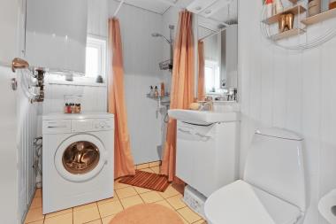 Huset har et godt indrettet køkken med opvaskemaskine, mikrobølgeovn, glaskeramisk komfur, køleskab og separat fryser på 30 liter. Stuen byder på stor sofagruppe med sofabord samt spisebord og stole. Her kan man hygge sig med brændeovnen tændt eller benytte fladskærmen med både DVD-afspiller, tyske og danske kanaler. Fra stuen er der adgang til sparummet. Sparummet er dejligt lyst hvor der er et vindue med mulighed for det naturlige lysindfald. Badeværelset har gulvvarme, bruser, toilet og håndvask. Huset har 4 soveværelser hvoraf 3 har dobbeltsenge og et enkelt har 2 enkeltsenge (de 2 enekltsenge har ikke fuld længde og er bedst til børn). Huset råder også over en varmepumpe, som gør huset mere miljøvenligt og billigere at varme op. Herudover er der også en vaskemaskine og tørretumbler i huset. Obligatorisk slutrengøring
