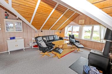 Dette velholdte, hyggelige kalmarhus ligger på en 830 kvm. naturgrund kun ca. 300 m. fra vesterhavet. Køkken med opvaskemaskine og 30 l fryser. Huset er indrettet med 3 gode soverum: 1 med dobbeltseng, 1 med 2 enkeltsenge og 1 med 1 seng. Der er en særdeles rummelig opholdsstue udstyret med bl.a. farve-tv med parabol (dog kun tyske kanaler), stereoradio med CD-afspiller og brændeovn. Trådløst Internet.Til huset hører også 3 delvist overdækkede terrasser med havemøbler og liggestole, hvorfra man fra den ene delvis har udsigt over Ferring sø. Husdyr ikke tilladt.