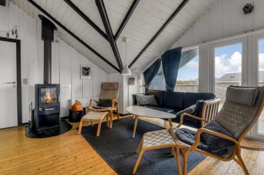 Godt indrettet feriehus i træ med stort, lukket terrasseanlæg (60 m2) med panoramaudsigt til klitterne ved Vesterhavet. Beliggende på naturgrund kun ca. 200 m fra Vesterhavet og fra Ferring Sø. Her er desuden gratis trådløs internetadgang. Fra huset er der udsigt til klitterne og det er ideelt til parret eller den lille familie.
