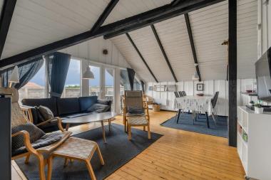 Godt indrettet feriehus i træ med stort, lukket terrasseanlæg (60 m2) med panoramaudsigt til klitterne ved Vesterhavet. Beliggende på naturgrund kun ca. 200 m fra Vesterhavet og fra Ferring Sø. Her er desuden gratis trådløs internetadgang. Fra huset er der udsigt til klitterne og det er ideelt til parret eller den lille familie.
