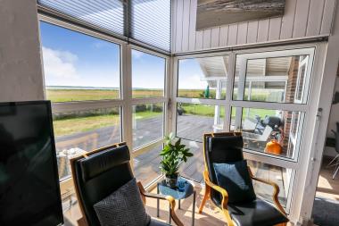 Dette velbeliggende feriehus har 4 soverum (1DS + 1DS + 2ES + 2ES). Lys og åben opholdsrum  som er bygget i kip. Hyggeligt indrettet med lædermøbler, spiseplads, stort smart-TV med tyske og danske kanaler, samt Chromecast til streaming. Huset er 110 m2 stort og er bygget i 1994. Dejlig, hyggelig brændeovn og 2 økonomiske varmepumper i hver sin ende af huset sørger for hygge, samt muliggør et altid varmt og rart hus, uanset vejr og årstid. Herudover har huset solceller på taget, samt batteri som lagre op tl 5 kw. Huset har derfor grøn energi og minimalt forbrug når der bruges el. Det lækre køkken er veludstyret. Der er bl.a. kaffemaskine, mikrooven, varmluftsovn og induktions kogeplade, emhætte, opvaskemaskine og køleskab med fryser. Der er 2 lækre badeværelser i huset. Begge har toilet, bruser, håndvask og klinkegulv og det ene med gulvvarme. Fra både terrasse og stue har man en fantastisk panorama-udsigt til Ferring Sø, samt udsigt til de høje klitter ved Vesterhavet. Ikke ryger hus. Max 1 husdyr er tilladt.