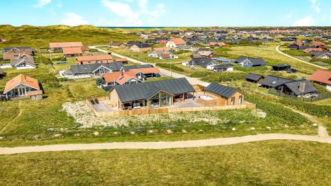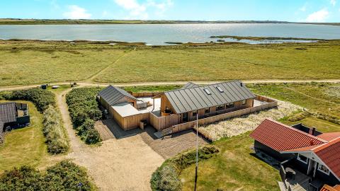Der er masser af plads på den 1.000 m2 store, unikke naturgrund og på det pragtfulde terrasseanlæg er der masser af muligheder for en plads i solen eller måske i skyggen. Udearealerne er også et kapitel for sig. Den ca. 150 m2 store, velholdte, indhegnet og delvis overdækket terrasse er med udekøkken, spa og havemøbler. Også her er udsigten unik og der er tænkt på det meste. Dejligt udekøkken med stor gas-grill, vask med koldt vand, så der er gode muligheder for at tilberede en god middag samtidig med at man hygger med familien eller vennerne, masser af havemøbler og liggestole. En tur i den udendørs spa gør oplevelsen unik og specielt på de mørke aftener med den klare stjernehimmel, den anden udendørs bruser er placeret tæt på udespaen så man kan gå under bruseren inden man sænker sig ned i spaen. En unik oplevelse som er ren terapi for sjæl og krop. Inde i annekset er der en skøn sauna samt et aktivitetsrum med bl.a., bordfodbold, dart og en motionscykel, så der er også tænkt på aktiviteter til ferien, i annekset er der desuden et depotrum med lås. Huset ligger på en af de bedste grunde i Vejlby Klit, ligger behageligt langt fra vejen. Fra grunden kan man via en sti igennem det fredede område nemt gå direkte ned til Ferring Sø som blot ligger 80 m væk. Rundt om Ferring Sø er der anlagt en sti så man kan vandre omkring hele søen og opleve naturen på nærmeste hold. Vesterhavet ligger blot 300 m fra huset så der er ikke langt til strandfornøjelser som badning, drageflyvning, lystfiskeri eller vandreture i den friske luft hvor man til tider kan blive blæst helt igennem. Vesterhavets vandkant ligger blot 300 meter fra huset. Herudover ligger huset tæt på en af Vestjylland smukkeste cykel- / vandre ruter der bl.a. byder på mulighed for at se både sø og hav på samme tid samt tæt på indkøb og restaurant. Nærmeste sæsonåbne købmand ligger kun 400 meter ved Vejlby Torv som også byder på en cafe / spisested. Vi anbefaler også gerne et besøg i havnebyen Thyborøn 15 km nord for sommerhuset eller den gamle købstad Lemvig 13 km mod øst. Dette hus tilbyder unik beliggenhed og udsigt og er velegnet til parret eller familien, der vil bo tæt på havet på en meget ugenert grund og som ønsker en helt speciel oplevelse de aldrig glemmer.