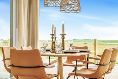 Det åbne køkken er bl.a. udstyret med induktionskogeplade med indbygget emhætte, indbygningsovn, opvaskemaskine, mikroovn samt køle-/fryseskab. Den tilberedte mad kan nydes ved spisebordet, som er placeret tæt ved køkkenet, mens man betages af udsigten til Ferring Sø og det omkringliggende område.