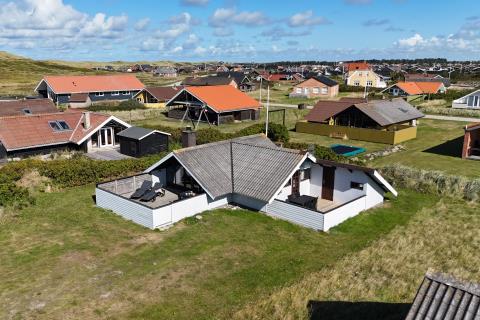 Huset er total renoveret i 2018 og beliggende på en 700 m2 stor naturgrund midt imellem Ferring sø og Vesterhavet, som begge ligger i en gåafstand på 250 m. Fra husets 2 terrasser har man kig til Ferring sø og til de høje klitter, hvor det til tider sprudlende Vesterhav gemmer sig bag.