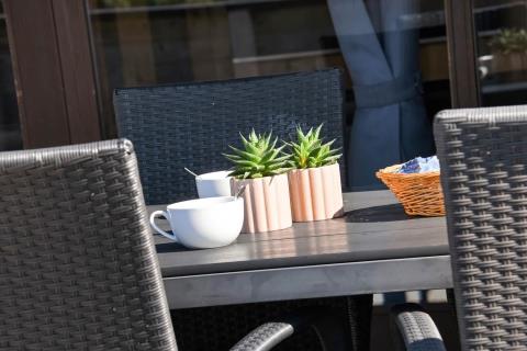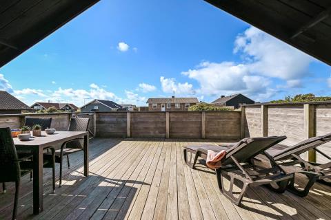 Udgang fra opholdsstuen til den 28 m2 store syd terrasse , hvoraf 8 m2 er overdækket. Terrassen er udstyret med grill, diverse havemøbler, solvogne og dertil hørende hynder. Sid på terrassen og nyd udsigten når solen går ned bag de høje klitter. Fra gangen er der udgang til den 15 m 2 store øst terrasse, som også er udstyret med havemøbler og hynder. Her kan man nyde morgen kaffen, imens man nyder solopgangen. Gode surf og fiskemuligheder i nærheden. Der forefindes også 2 legepladser i Vejlby Klit. Købmand og Cafe i Vejlby Klit som ligger ca. 400 m fra huset af, som har åbent fra Påske til efteråret.