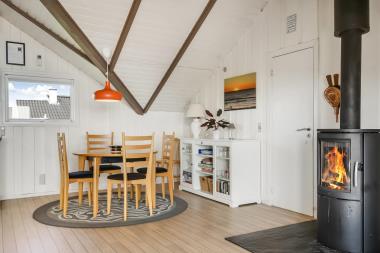 Huset har i 2019/20 gennemgået gennemgribende istandsættelse, hvor det også har fået ny dejlig brændeovn og økonomisk varmepumpe, som sammen sørger for hygge, samt muliggør et altid varmt og rart hus, uanset vejr og årstid. Det nye lækre køkken er veludstyret. Der er bl.a. varmluftsovn og keramiske kogeplader, emhætte, opvaskemaskine, mikroovn gemt væk i skab og køleskab med fryser. Desuden æggekoger, brødrister, kaffemaskine, kogekande, håndmixer og stavblender. Badeværelse med sauna, toilet, bruser, håndvask og klinkegulv med gulvvarme. Fra både terrasse og stue har man en fantastisk panorama-udsigt til Ferring Sø samt udsigt til de høje klitter ved Vesterhavet. Ikke ryger hus. 1 husdyr er tilladt. Har man el-bil eller en Plug-In hybrid, så er der ved huset 3-faset 16amp CEE stik, der kan lade op til 11 kWh.