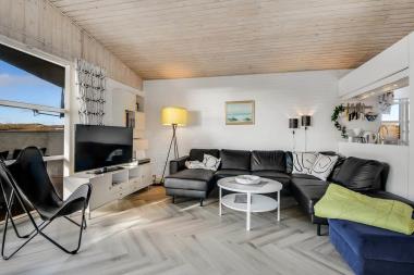Pænt indrettet feriehus med kombineret opholdsstue og køkken. Stuen er indrettet med lædermøbler, Smart-TV med danske og tyske programmer og en skøn brændeovn, som sammen med varmepumpen sørger for en behagelig varme og begge er medvirkende til en lavere forbrugsafregning. Tæt på køkkenet er spisebordet placere. Åben køkken med glaskeramisk komfur, køle-/fryseskab, emhætte, opvaskemaskine og mikroovn. Stue og køkken er med nyt sildebenspaketgulv. 3 soverum: 1DS + 1DS + 2S og alle soverum er med nyt sildebenspaketgulv. Nyrenoveret badeværelse med toilet, håndvask, bruser samt adgang til sauna og med gulvvarme. Til de mindste gæster er der 1 barneseng og 1 barnestol. Ikke rygerhus. 1 husdyr er tilladt.