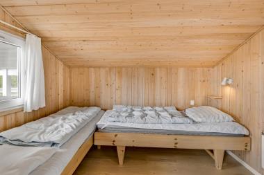 Indretningen byder på lyse trægulve, store vinduespartier og et åbent køkken-alrum, der indbyder til både hygge og samvær. Køkkenet er indrettet med glaskeramisk komfur, køle-/fryseskab, opvaskemaskine og mikroovn. Smagfulde farvevalg skaber en tidløs elegance, mens den gennemtænkte planløsning sikrer optimal udnyttelse af pladsen. Køkkenet er kombineret med stuen, hvor der er brændeovn. Parabol dog kun med tyske kanaler samt dansk DR1. Huset har tre soveværelser: et med dobbeltseng, to med enkeltsenge samt to ekstra sovepladser på hems.