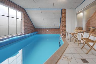 Indvendigt er der trælofter og vægge af mursten, gulve i køkken og spisehjørnet er belagt med trælaminat, tæpper i opholdstuen og på værelserne. Poolrummet er med en swimmingpool, som er 4,7 x 2,8 x 1,2 m og med modstrømsanlæg, gulvvarme og klinkegulv og optimeret med energibesparende varmepumpe. Fra poolrummet er der adgang til badeværelse med gulvvarme og bruseniche. Husets andet badeværelse er særdeles rummeligt, og indeholder toilet, bruser, 2 personers spabad, vaskemaskine, tørretumbler og adgang sauna. Det funktionelle køkken er med kogeø og udstyret med keramiske kogeplader, varmluftovn, opvaskemaskine og fryser. Opholdstuen, hvorfra der er direkte adgang til husets poolafdeling og til terrasse, er indrettet med komfortable møbler, brændeovn, smart-TV, som har indbygget danske og tyske TV-programmer, radio og mulighed for streamingstjenester, DVD. 3 soveværelser med 1DS + 1DS + 1DS samt alkove i stuen med 2 sovepladser og endvidere stor hems (med ståhøjde) med 2 sovemuligheder på madrasser. Til de mindste feriegæster er der barneseng og barnestol. Huset har 350 mm loftsisolering og samtidigt er der installeret 2 varmepumper , som gør huset energibesparende. 2 hunde er tilladt. Depositum vintersæson kr. 4500 og sommersæson kr. 2200. Som lejer af dette hus er der gratis adgang til Harboøre Centeret .