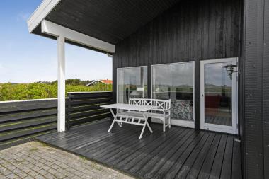 Dette flotte arkitekttegnede feriehus ligger på en naturgrund kun 300 m fra Vesterhavet og 200 m fra cafeteria (åben i sæsonen). Afstanden til Ferring Sø er kun 600 m. Huset er renoveret i 2009 og fremstår lyst og venligt med store vinduer og terrassepartier. Stuen er indrettet med moderne og komfortable møbler, CD, DVD, radio, TV med danske og tyske kanaler. 4 rummelige soveværelser: 1DS + 1DS + 1DS + 1DS. Badeværelse: Toilet, håndvask og bruser, sauna og gulvvarme. Godt indrettet køkken som ligger i forbindelse med stuen. Køkkenet indeholder Glaskeramisk komfur, køleskab, og opvaskemaskine. i udhuset står der en 120 l fryser. Til de små er der højstol. Vaskemaskine. Husdyr er ikke tilladt. Ikke rygerhus.