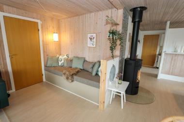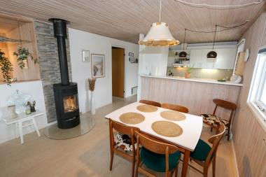 Et godt udnyttet træhus på 79 m2 med gratis Internet. Flot renoveret i bedste badeholtelsstil. Bilen parkeres lige ved huset. En mindre entré byder velkommen og sørger for adgang til husets værelser, badeværelse og kombineret køkkenhjørne og opholdsstue. 3 soveværelser (1DS, 1DS, 1DS). Hyggelig opholdsstue med polstersofa og spiseplads, fladskærms tv med tyske og danske kanaler. Hyggelig brændeovn samt varmepumpe. Køkkenhjørne med komfur med keramiske kogeplader, emhætte, mikroovn, køleskab med lille fryseboks, opvaskemaskine og udgang til terrassen. Husets badeværelse har klinkegulv med gulvvarme, toilet, håndvask, bruseniche samt vaskemaskine. Husdyr ikke tilladt. Ikke ryger hus.