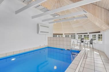 Huset er 165 m2 stort og har 4 dejlige soverum (1xdobbeltseng, 1xdobbeltseng, 2xenkeltsenge og 4xkøjesenge) samt en hems med 2 sovepladser til begejstring for mange børn og barnlige sjæle. I hjertet af huset findes et veludstyret køkken/alrum hvor loftet går til kip og hvor småsprossede vinduer bidrager til den hyggelige feriestemning. Her er alt i hårde hvidevarer; komfur med glaskeramiske kogeplader, emhætte, opvaskemaskine, mikroovn, stort amerikanerkøleskab med fryseboks og sågar et vinkøleskab. Nyd maden ved spisebordet eller slap af i de behagelige sofamøbler. TV i stuen er med danske og tyske kanaler og der er mulighed for brug af Chromecast. Der er ekstra TV og DVD på hemsen, hvor man kan lave sin egen lille biograf. Skulle det blive for koldt, eller skal stemningen blusses op, sætter man blot gang i husets brændeovn, hvor flammerne og den intensive varme kan nydes. Der er hvide klinkegulve i stue og køkkenområde med gulvvarme og der er gulvtæpper/parketgulve i soveværelserne. Husets wellness pool-afdeling rummer udover poolen et spabad og en sauna og huset har hele 3 badeværelser, med toilet, bruser, håndvask samt gulvvarme og en luft til vand varmepumpe. Vaskemaskine og tørretumbler er en selvfølge og er placeret i husets entré. Der er udgang fra opholdsstuen til husets store og delvise overdækkede samt indhegnede terrasse. På terrassen er der havemøbler, parasol, solsenge, sandkasse, rutchebane, bord/bænkesæt til de små m.m. Inde i huset er der en barneseng, der kan slåes op, til de helt små. Huset er et ”ikke ryger hus”. Max. 2 husdyr er tilladt. Der er installeret varmepumpe i huset, hvilket betyder at du som gæst kan spare en del på din elvarmeregning – varmepumpen leverer op til 4 gange så meget effekt, som den bruger. Huset lejes ikke ud til ungdomsgrupper. Har man el-bil eller en Plug-In hybrid, så er der mulighed for opladning gennem opsat ladeboks på gavlen i den nordlige ende af huset. Depositum vintersæson kr. 3.000 og sommersæson kr. 2.200.