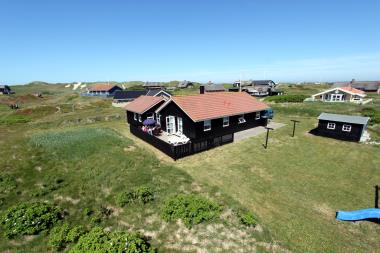 Poolhus med sauna og spa. Poolrummet er renoveret i 2014. Huset ligger i et dejligt område på en naturgrund med klitter og græs kun ca. 200 m fra vesterhavet. Dejlig stor terrasse med havemøbler og grill. Internetadgang. Køkkenet er veludstyret med opvaskemaskine, mikroovn og køleskab med stor fryser og er kombineret med opholdsstuen hvor der bl.a. er brændeovn, farve-tv med DR 1. Parabol dog kun med tyske kanaler, DVD og radio. Badeværelset er renoveret i 2014 4 soverum: (DS) med F-TV og DVD+(DS)+(DS)+(1K som er dobbelt forneden). Et godt tilbud til de familier der søger et feriehus med pool og sauna. husdyr er tilladt. Vand og energiomkostninger sommer ca kr. 800 til kr. 1400. Vinter ca. kr. 1200 til kr. 2200 afhængig af vejret.