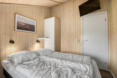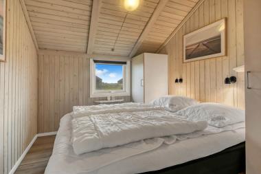 96 m2 stort, Rummeligt og komfortabelt indrettet feriehus i træ. Opholdsstuen er åben til kip og store vinduespartier, giver et rigtig godt lys inde i huset. Opholdsstuen er opdelt i spisestue, som er kombineret med det åbne nye køkkenhjørne. Opholdsstuen med, lædermøbler, spisebord, bluetoohthøjtaler, Smart-TV med danske og tyske programmer samt mulighed for streaming af TV/radio/apps. Nyd udsigten over området og slap af foran den knitrende, nye brændeovn som sammen med varmepumpen hjælper med at reducere udgiften til varmeregningen. Flot, nyt og praktisk hårdt gulv i opholdsrum og køkkenhjørne. 4 gode soverum (2ES, 1DS, 1DS, 1KS) samt en hems med 2 ekstra sovepladser) I hvert soveværelse med dobbeltseng er der et Smart-TV med mulighed for streaming af egne programmer. Til de små gæster er der puslepude og babybadekar til rådighed. Nyt køkkenhjørne med alt i service / køkkengrej samt komfur med glaskeramiske kogeplader, emhætte, opvaskemaskine, køleskab med fryseboks og mikroovn. Huset råder over 2 badeværelser begge med klinkegulv med gulvvarme, toilet, håndvask og bruser. Det ene badeværelse er med helt nyt spabad og direkte adgang til saunaen samt ny vaskemaskine. Ikke ryger hus. 1 husdyr er tilladt.