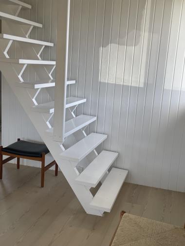 På husets første sal finder I to soveværelser. Det ene værelse er indrettet med en dobbeltseng, mens det andet har to enkeltsenge. Fra det store soveværelse er der direkte udgang til en hyggelig altan, hvor I kan nyde udsigten til klitterne og mærke den friske havluft.
