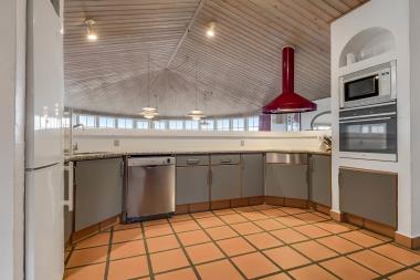 Køkkenet er med keramisk komfur, opvaskemaskine, mikroovn og 50 l fryser. Den store stue, som er i forbindelse med køkkenet, er indrettet med brændeovn, DVD, stereoanlæg med CD samt fladskærms-TV med DR1 samt parabol som modtager tyske kanaler. Gulvene i huset er belagt med klinker, dog er der tæpper i soverummene. I den store poolafdeling er husets store swimmingpool (8,0 x 4,0 x 1,45 m), 3 pers spa og badeværelse med gulvvarme og bruser. Herfra er der adgang til husets sauna. Fra køkkenet og stuen har man en flot udsigt ud over poolrummet. Huset indeholder endvidere to separate soveafdelinger med tilhørende badeværelser. I badeværelserne er der bruser. Obligatorisk slutrengøring. Huset har 5 soverum: 1DS + 1DS +2S +1DS +2K. Huset opvarmes med olie. Separat rum med vaskemaskine og tørretumbler. Desuden er der barnestol. Bemærk: Max et husdyr er tilladt. Et dejligt feriehus som på alle årstider vil kunne danne rammen om en vellykket ferie. Depositum vintersæson kr. 4500 og sommersæson kr. 2200.