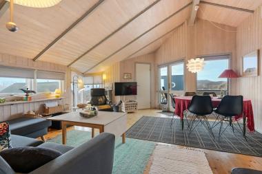 Fra de 2 terrasser på cirka 60 kvadratmeter hver har man en pragtfuld udsigt over sommerhusområdet med de mange klitter. Til huset hører både grill, havemøbler og 2 solvogne, så på terrassen kan man tilbringe næsten hele ferien med eksempelvis en god bog. Stranden ligger kun 150 meter væk, så man under sig selv at se solnedgangen over Vesterhavet minimum een gang på ferien. Stranden byder på masser af plads og mulighed for mange aktiviteter såsom vandsport, solbadning, drageflyvning eller børnene kan bygge sandslotte eller dæmninger. Besøg gerne havnebyen Thyborøn hvor der findes attraktioner som Jyllandsakvariet, Kystcenteret, SeaWar museum og selve havnemiljøet. Her er ligeledes en fantastisk børnevenlig sandstrand, så tag endelig badetøjet med. Lemvig som ligger 13 km inde i landet ved Limfjorden byder på en hyggelig havn og hyggelig gammel bymidte med gode shoppingmuligheder. Her er også oplagt at gå på vandrestier i det bakkede landskab som rager op til 80 meter over havet.