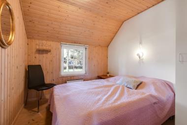 Virkelig flot og hyggeligt indrettet feriehus til 8 personer i sten med stråtag. Huset er beliggende i en lille skov i gåafstand til havet. Indgangen er også en fordeler gang til soveværelser og badeværelser. Fra gangen kommer man ind i det åbne køkken som er kombineret med stuen. Køkkenet er godt udstyret og indeholder elkomfur med glaskeramiske plader, køleskab med frostboks, mikroovn, airfryer og opvaskemaskine. Fra køkkenet er der udgang til terrasse. Stuen er er godt møbleret med lækker hjørnesofa, spisebord og TV med danske og tyske programmer, der er ligeledes fra stuen udgang til terrassen, der er desuden CD og Radio. Dejlig brændeovn som giver en behagelig varme også i de kolde perioder. Huset råder over 3 soverum: 1DS + 1DS + 2S. Desuden er der i gangen en stejl trappe op til hemsen hvor der er 2 sove muligheder. 2 Badeværelser som begge er med gulvvarme. Det ene er med toilet og håndvask og det store badeværelse er med bruser, spa og adgang til sauna, her er desuden også en vaskemaskine. Der er trægulve i alle opholdsrum og klinker på badeværelserne. 2 husdyr er tilladt. Rygning er ikke tilladt.